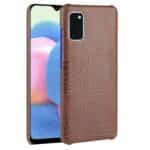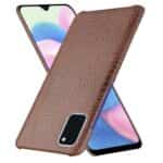 Samsung Galaxy A41 bagcover med krokodillemønster i hårdt materiale – Brun
