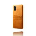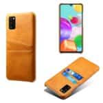 Samsung Galaxy A41 bagcover med to kortholderlommer i hårdt materiale – Orange