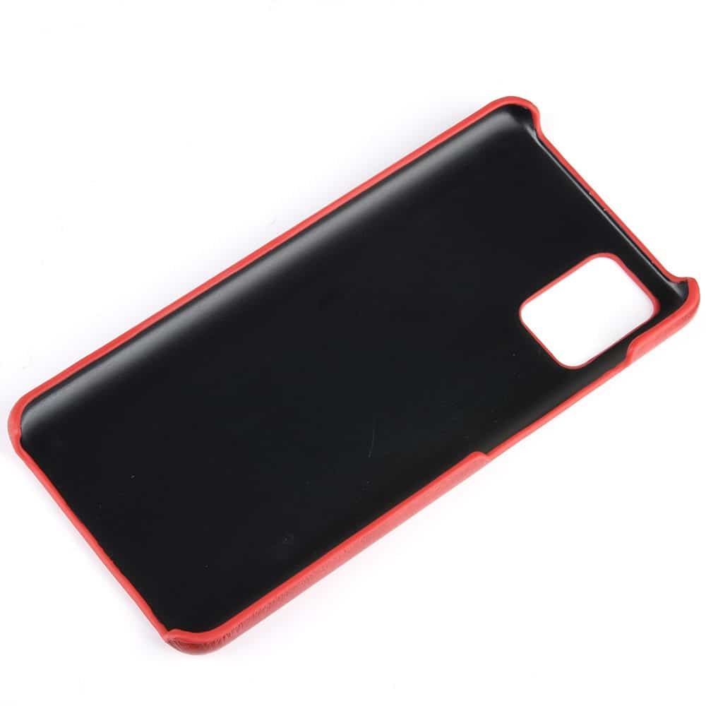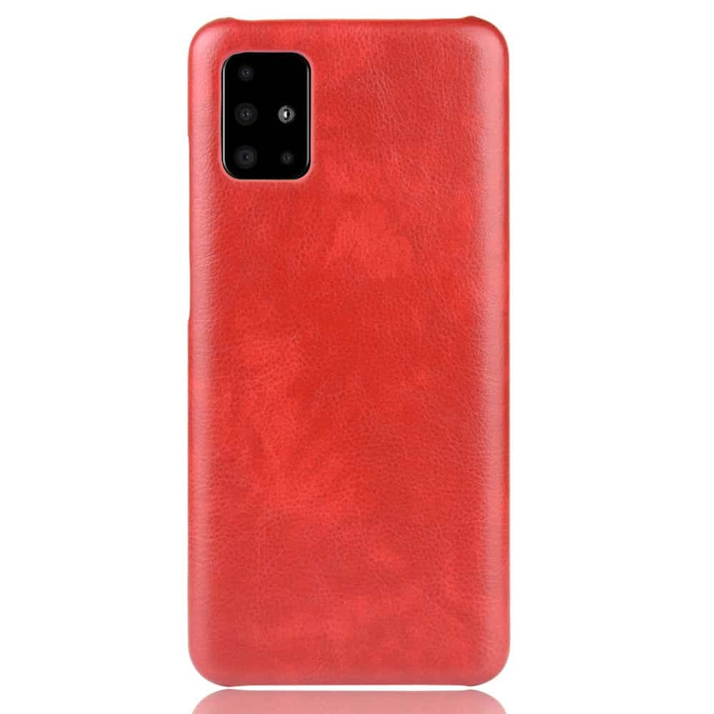 Et rødt mobilcover af hårdt plastik belagt med PU læder til din Samsung Galaxy A51 5G giver dig en god kombination af solid beskyttelse, stor berøringsflade og et stilrent design.