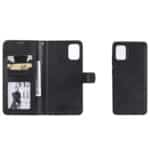Samsung Galaxy A51 2-i-1 flipcover med kortholderlommer og strop i blødt materiale – Sort