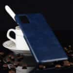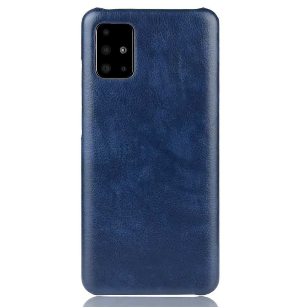 Et blåt mobilcover af hårdt plastik belagt med PU læder til din Samsung Galaxy A51 giver dig en god kombination af solid beskyttelse, stor berøringsflade og et stilrent design.