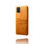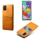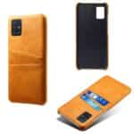 Samsung Galaxy A51 bagcover med to kortholderlommer i hårdt materiale – Orange