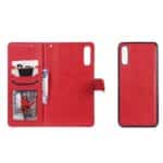 Samsung Galaxy A70 2-i-1 flipcover med kortholderlommer og strop i blødt materiale – Rød