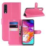 Samsung Galaxy A70 flipcover med kortholder i litchi læder – Rosa