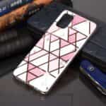 Samsung Galaxy A71 bagcover med marble mønster i blødt materiale – Hvid/Lyserød