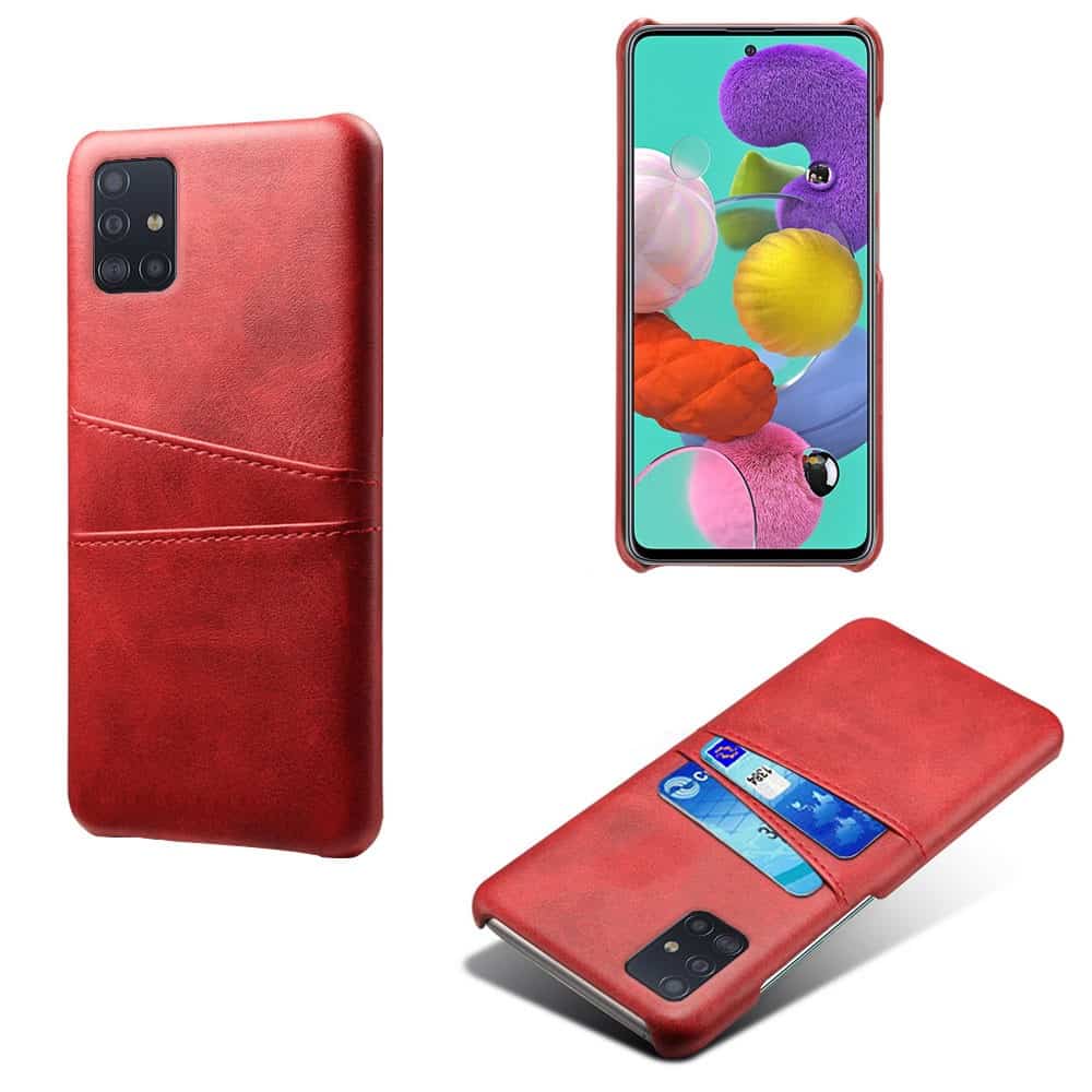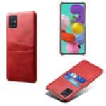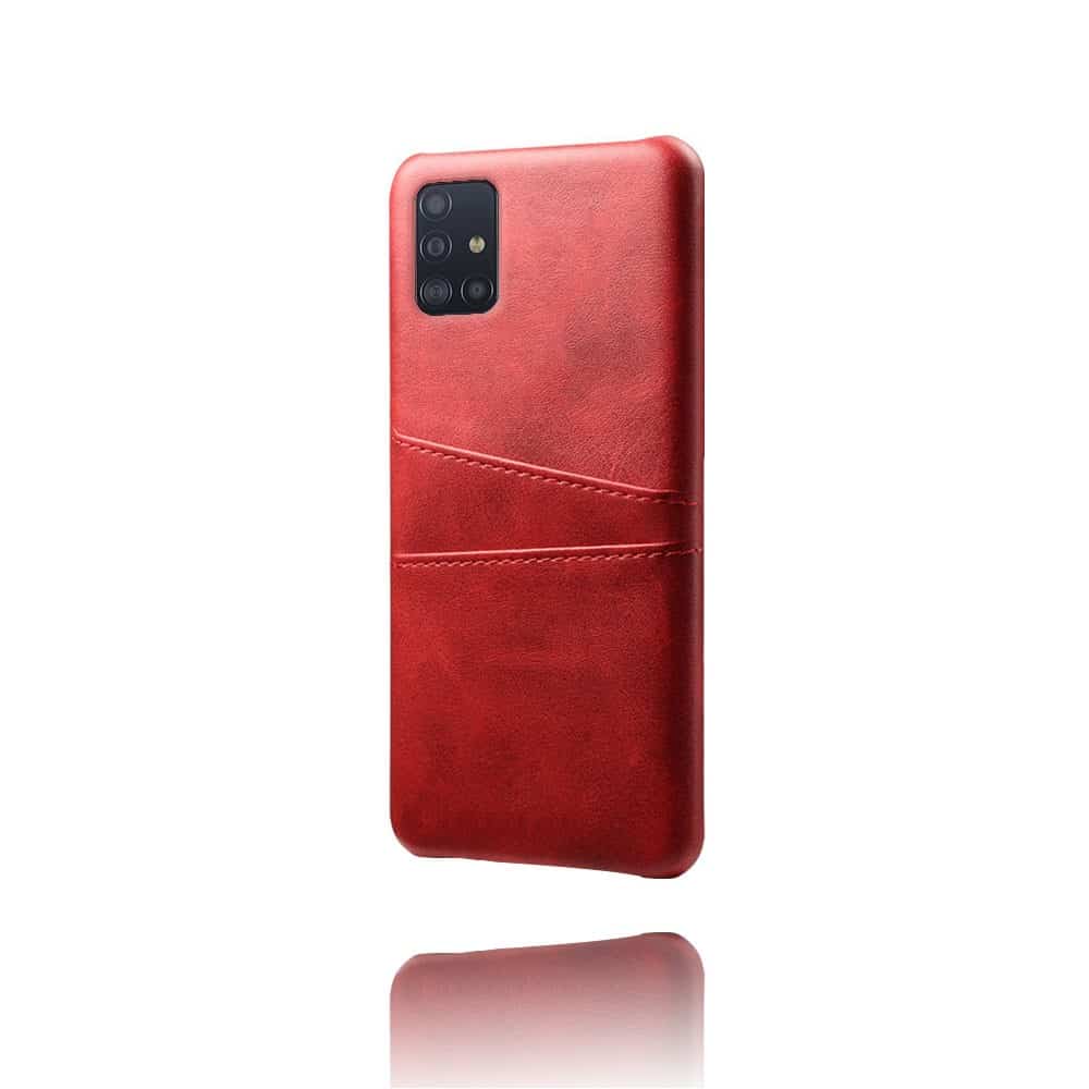 Samsung Galaxy A71 bagcover med to kortholderlommer i hårdt materiale – Rød