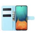 Samsung Galaxy A71 flipcover med kortholder i litchi læder – Lyseblå