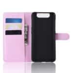 Samsung Galaxy A80/A90 flipcover med kortholder i litchi læder – Lyserød
