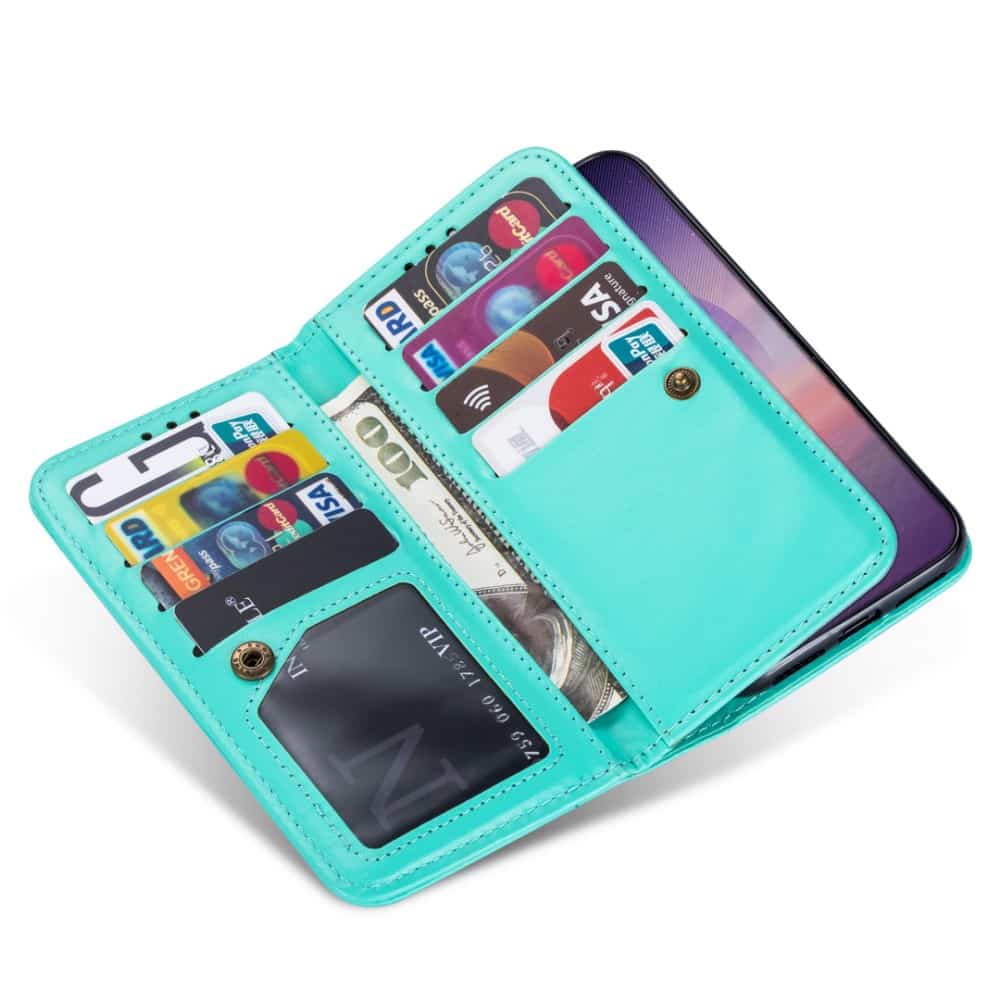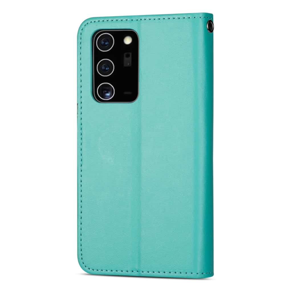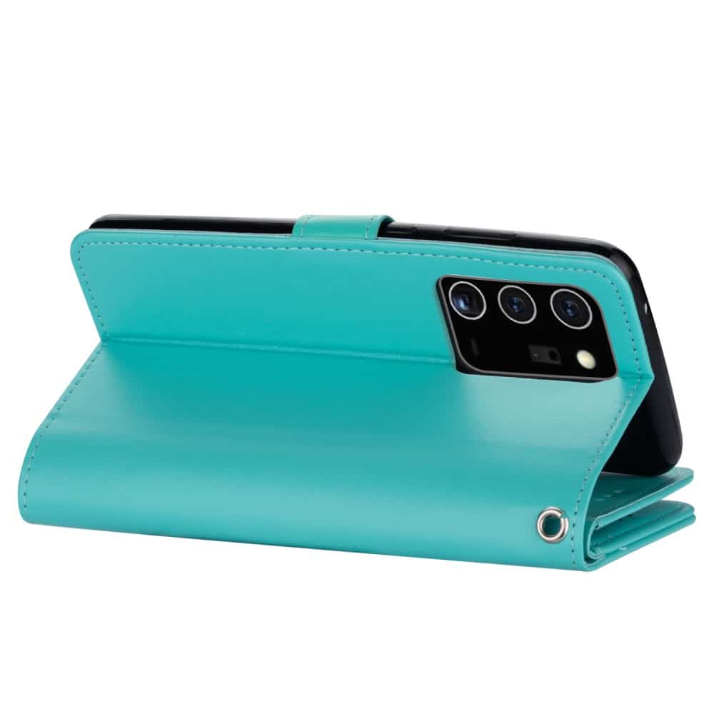 Samsung Galaxy Note20/Note20 5G flipcover og pung med strop i blødt materiale – Grøn