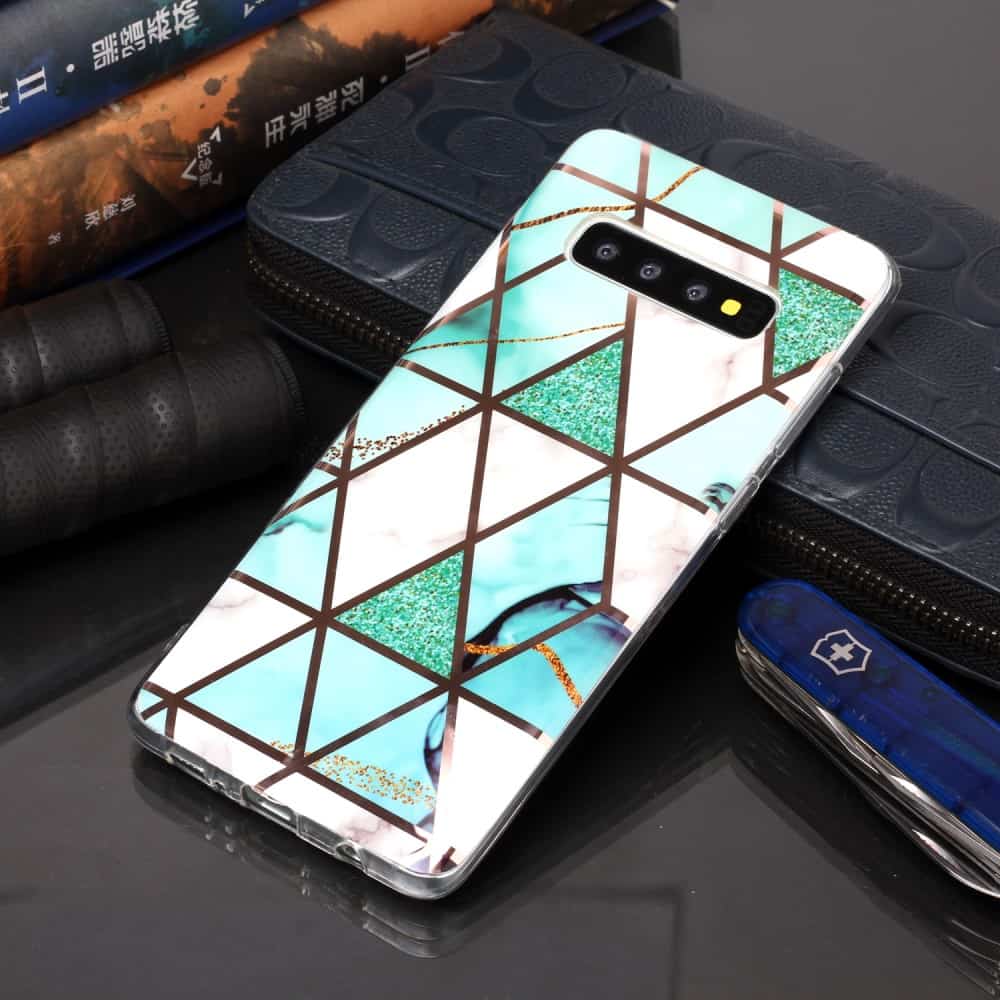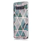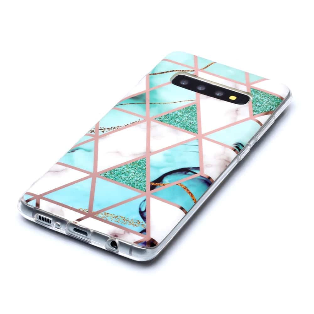 Samsung Galaxy S10 Plus bagcover med marble mønster i blødt materiale – Hvid/Turkis