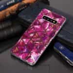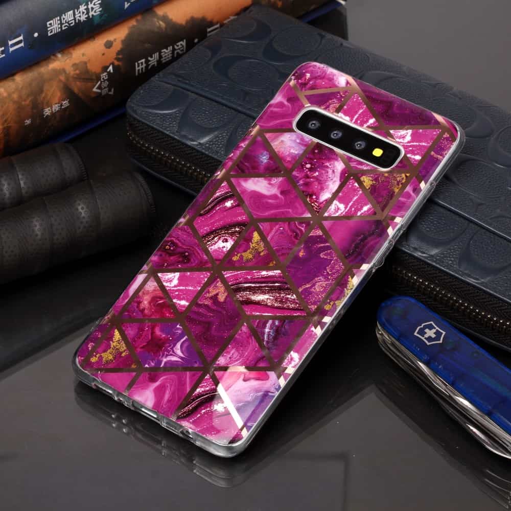 Samsung Galaxy S10 Plus bagcover med marble mønster i blødt materiale – Rosa