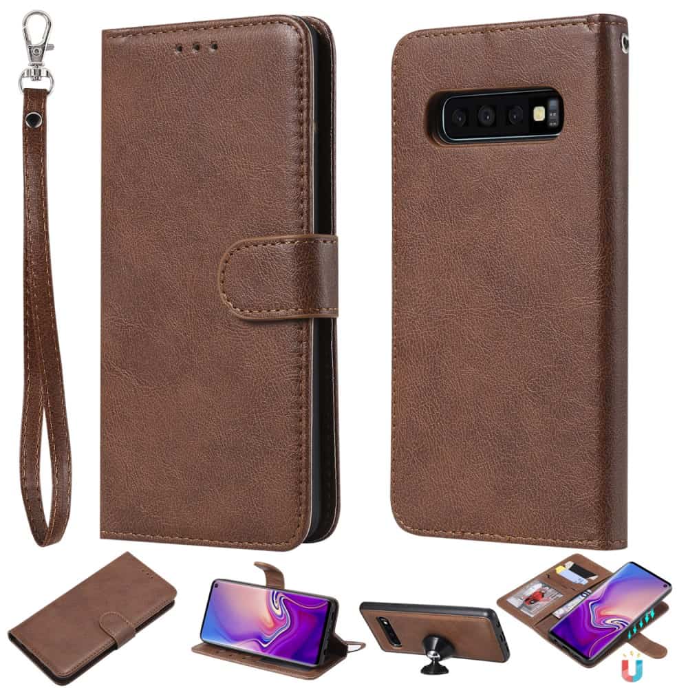 Samsung Galaxy S10 2-i-1 flipcover med strop og kortholderlommer i blødt materiale – Brun