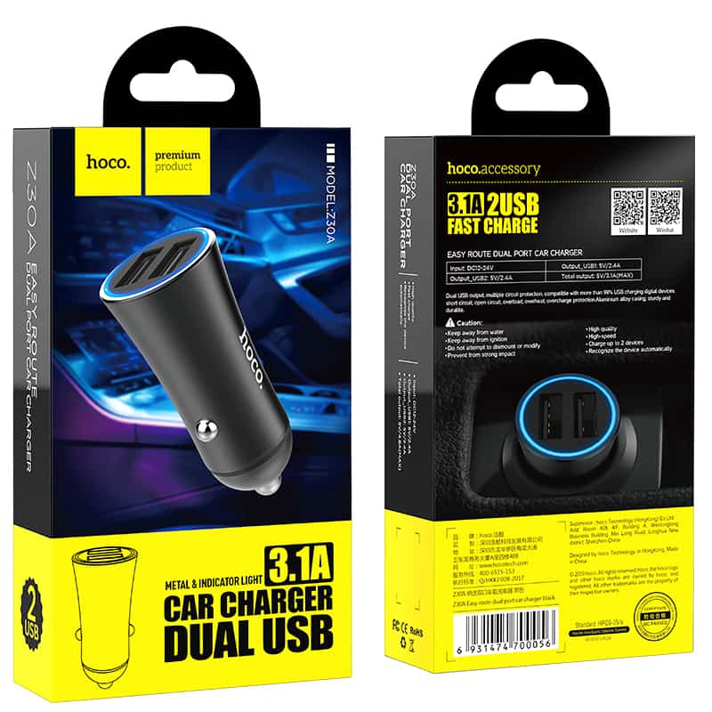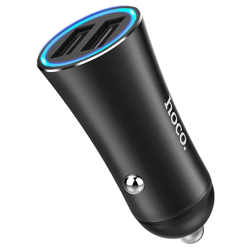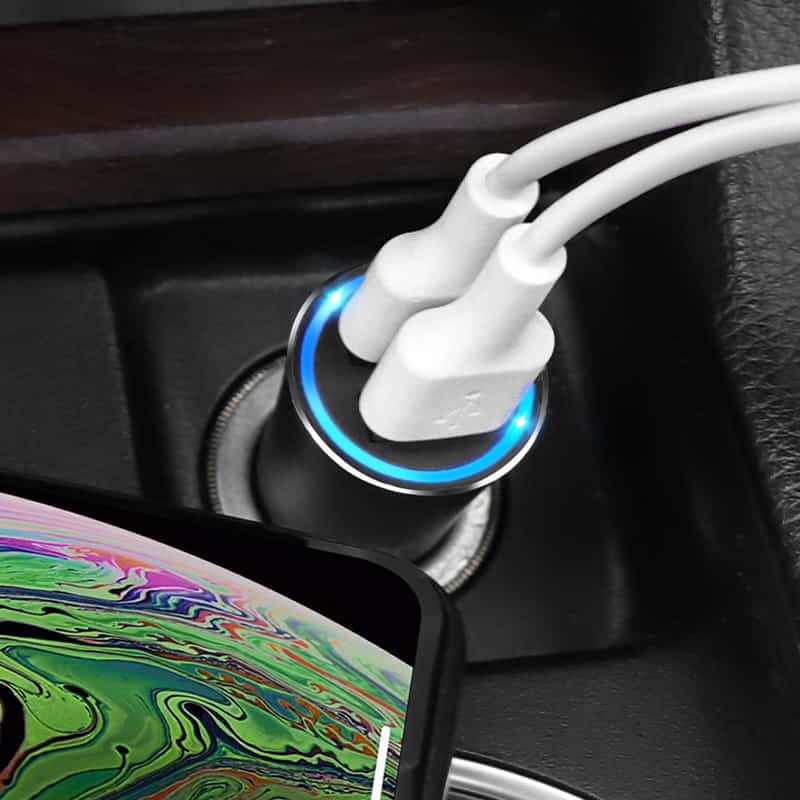 Fast Charging USB-A biloplader med 2 udgange og lysindikator