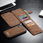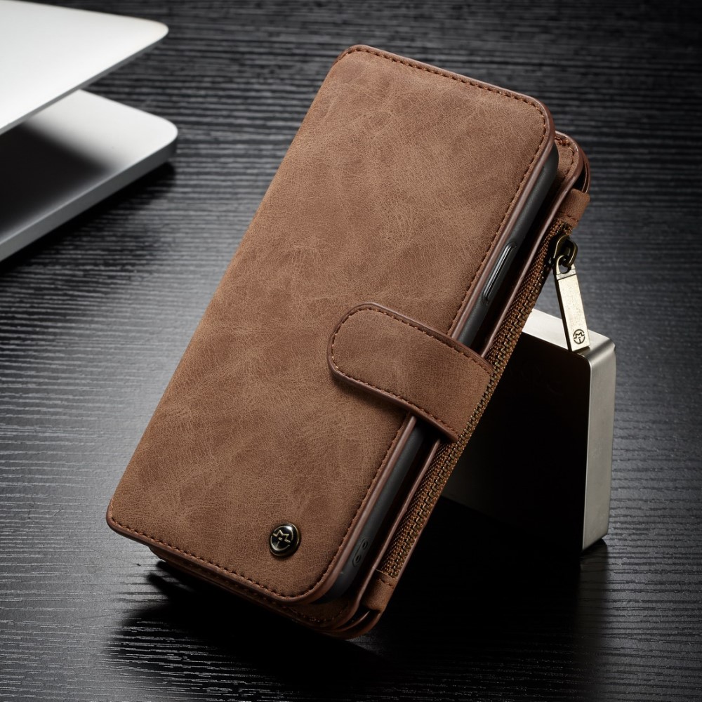 iPhone X / XS CASEME 2-i-1 mobilcover af split læder og pung med lynlås – Brun